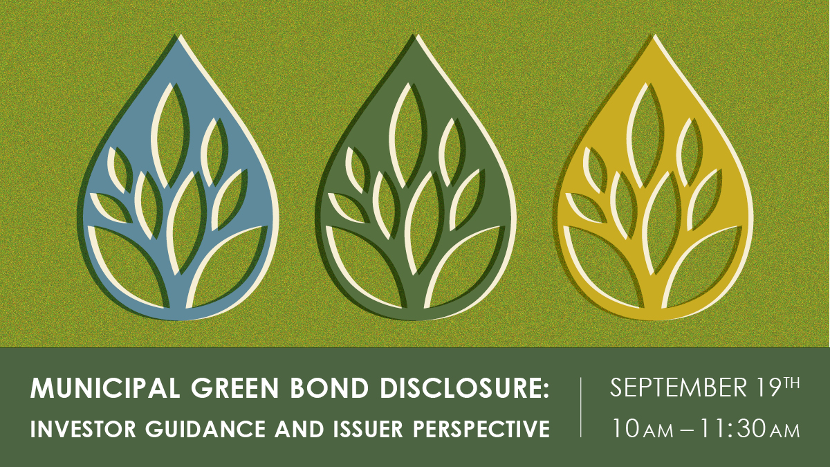 The requirement of public agency issuers to inform investors through reliable and thorough disclosure is central to a well-functioning municipal market. However, with the continued growth of labeled debt over the last decade – particularly green bonds – issuers may not be familiar with the specific investor expectations for green bond disclosure. In May 2023, the California Green Bond Market Development Committee released a paper, Recommended Approach to Municipal Green Bond Disclosure, to provide insight on investors’ expectations. This webinar will explore the recommendations contained in the paper and facilitate a discussion between investors that participated in the development of the report as well as issuers of green bonds.