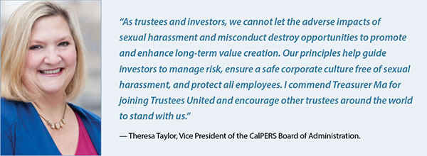 Treasurer Ma joined workers and pension trustees in April to urge asset managers nationwide to adopt tougher principles to stem workplace sexual harassment and protect workers.