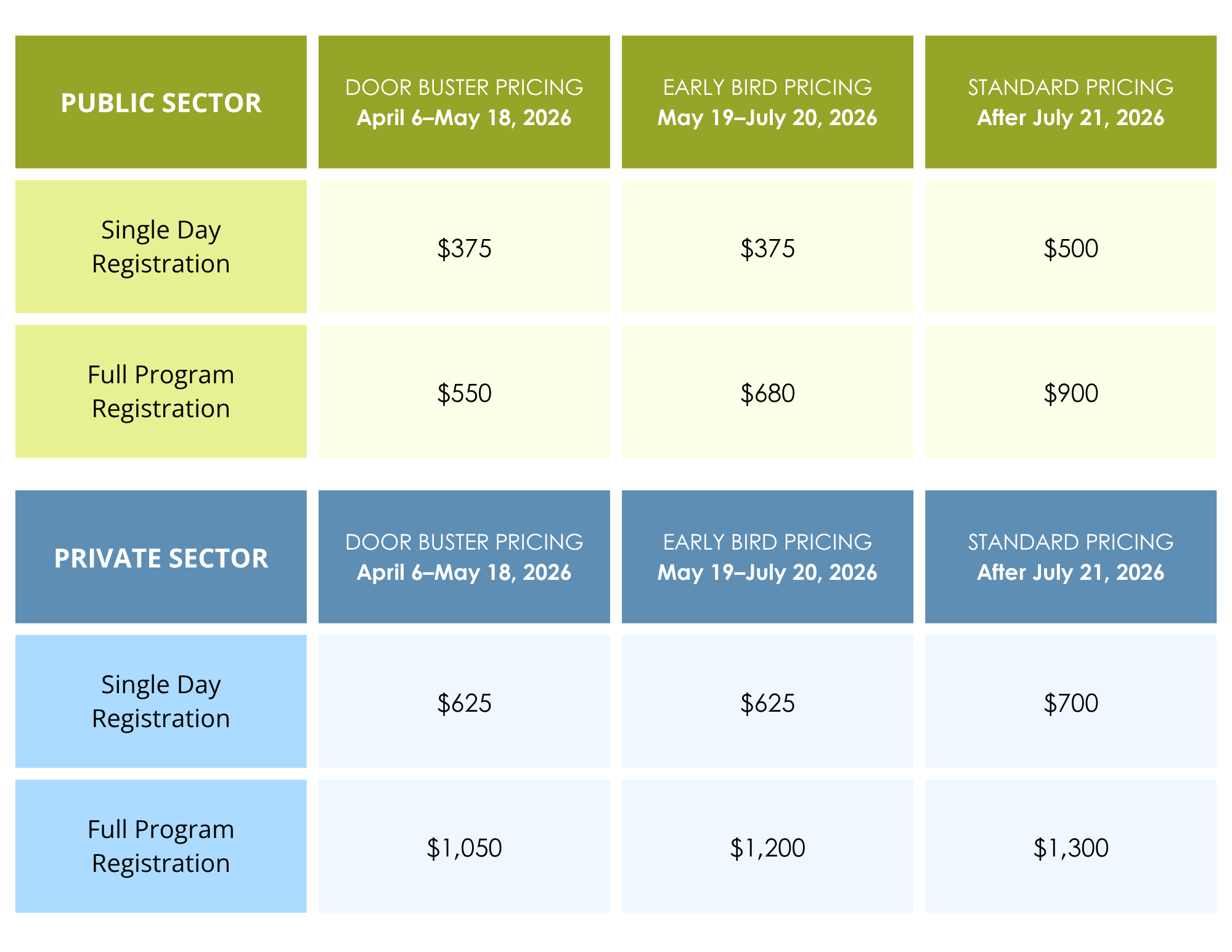 Online registration will close on September 8, 2026. Please contact CDIACEducation@treasurer.ca.gov for group registrations or if you need to cancel or transfer your registration. A refund may be issued if cancellation occurs on or before Friday, August 14, 2026. However, substitution of officials or staff from the same entity is permitted.