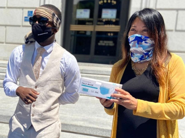 Treasurer Ma has handed out 30,000 masks to help fight COVID-19 in partnership with the nonprofit Asian Pacific Islander American Public Affairs (APAPA) group. Ten thousand masks went to the I Am Sac Foundation run by Stevante Clark, seen here with the Treasurer.